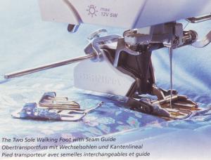 Use the "quilting" sole when machine quilting. The new quilting sole has an "open toe" configuration to improve visibility when quilting.