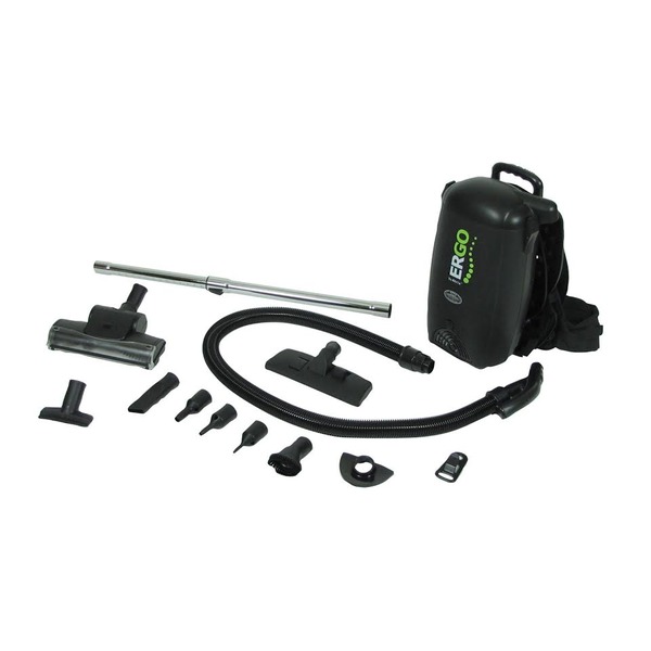 The Ergo Backpack HEPA vacuum is the most cost effective solution for comfort, power and fine filtration. Comes standard with a HEPA filter. Easily converts from a powerful vacuum to a powerful blower. - Includes an air driven turbo brush, a hard floor tool, a flexible hose with a pistol grip, a metal telescopic wand, upholstery tool, dust brush, crevice tool, blower port and blower tools. 3 Quart dry particulate filter is ideal for any situation that involves a lot of cleaning, stairs, draperies, blinds, etc. - Ergonomic and comfortable fit for all sizes. - Weighs only 10 pounds. - Perfect for Hotels, Hospitals, Schools, Libraries - Features:HEPA Filter Bag4 Stage Filtration - Easily Converts to Blower - Powerful 1400 Watt, 12 Amp