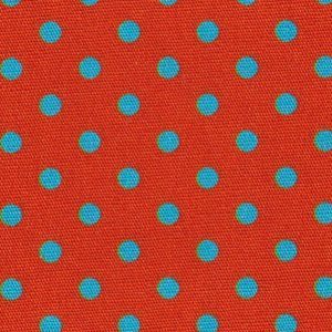 Turquoise Dots on Orange Fabric. Print #2388. 100% cotton fabric. 60″ wide. This fabric has turquoise dots on a solid orange background.
