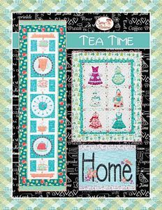 It's Team Time! Make one or make all three easy, fun and quick appliqued projects, including a runner with cute teacups and pots (18x73in). A wall hanging of aprons (27x36in), and a sweet home wall sign (22x27in).
