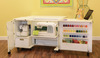 The Wallaby comes with a quilt leaf on the back of the cabinet that folds up or down and will help to expand your work area, preventing large quilts or large pieces of fabric from falling on the floor behind the cabinet.
