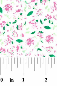 Pink and Green Floral Fabric – Print #2717. This fabric has a pink and green floral print on a solid white background and will be perfect for your next dress or other outfits.