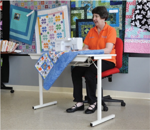 Flatbed sewing surface adjusts for various sewing machine makes and models up to 17.5” W x 7.375” D Bed Size. Folds at for travel or storage and easily ts under a bed or in a closet.