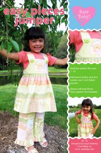 Multisize pattern fits sizes 1 - 4 yrs. This adorable patchwork top or jumper can be made with a pretty mix of fabrics. Bodice has straps with front button closures. Plenty of fullness in the top for twirling.