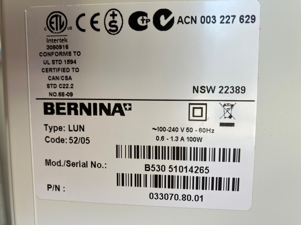 BERNINA 530 TRADE 148 Stitch Computer Sewing Machine, Extension Table, 1 Step Buttonhole, Auto Thread, 11 Needle Positions, Knee Lever, Optional BSR