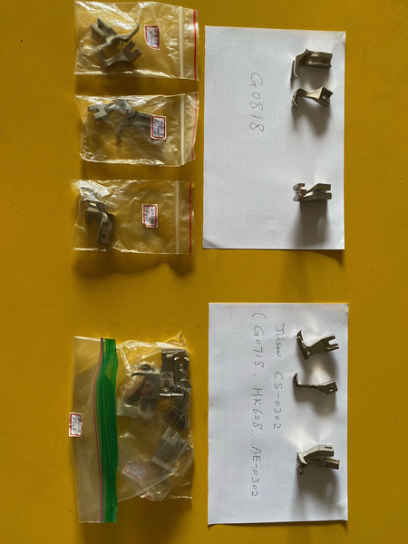 we only have one set of zipper feet left and one set zipper feet right at $30 each for G0818 machines in stock available as photo attached. Now we have only one (1) set standard presser foot for G0818 in Miami FL stock available, price FOB Miami USD 12.00 per set, and also have 1 set left zipper foot and 1 set right zipper foot for G0818 machines in Miami FL stock available, price also FOB Miami USD 12.00 per set.
