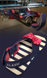 Fast Clamp PRO is the answer for hard-to-hoop items. Adjust the arms for height and width, slip the product to be embroidered over the lower arms, clamp down, and go! for Hard to Hoop Embroidery On: dog collars, leashes, bag straps, flip flops, shoes, purses, backpacks, pockets, tote bags, hats.