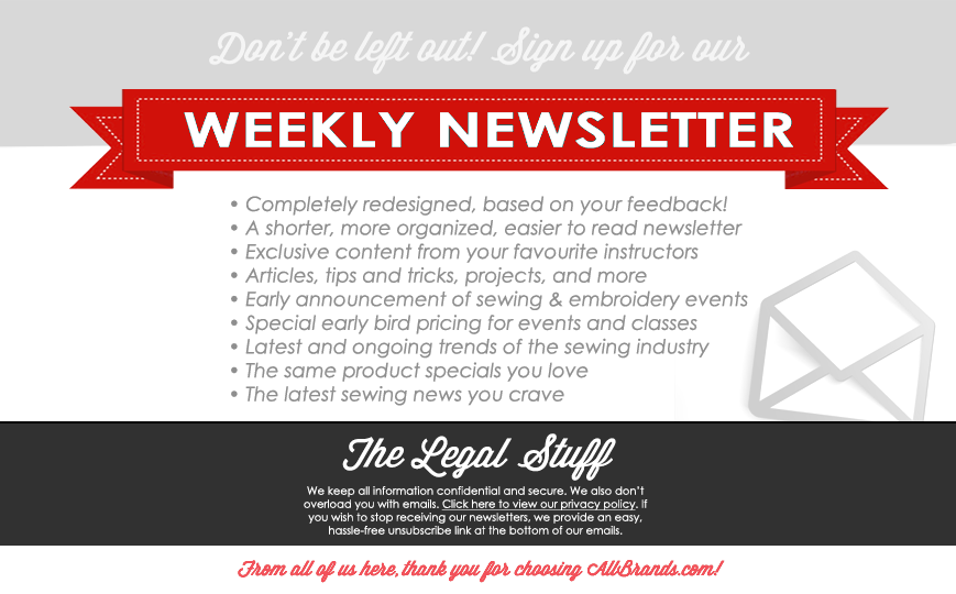 Facebook Twitter Instagram Pinterest YouTube Blog Sew Forum Class Calendar Major Events Retail Locations Synchrony Financing